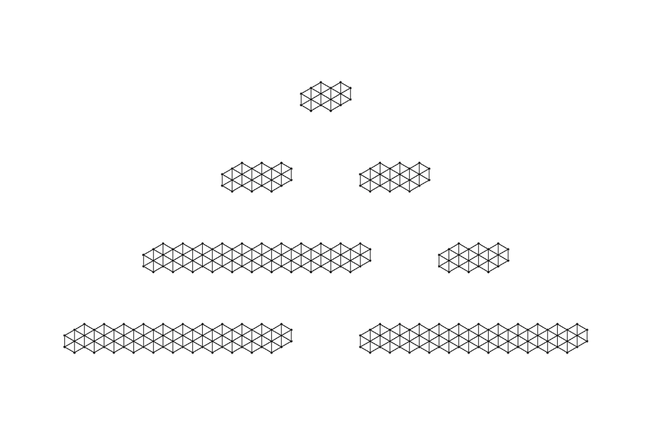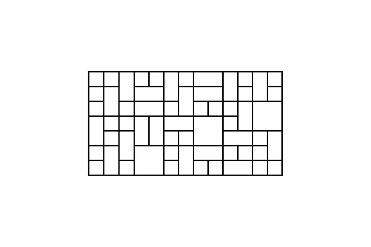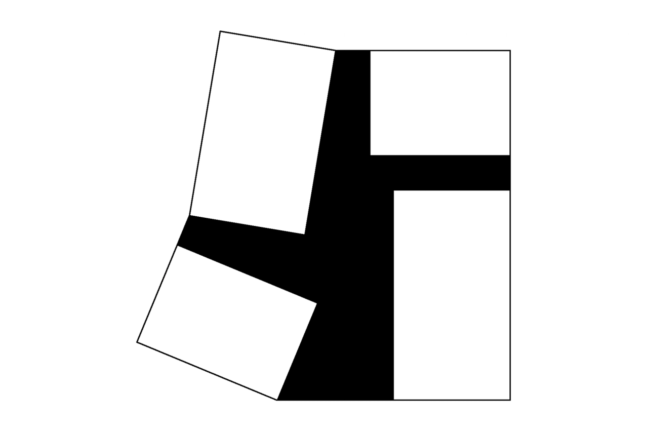 The arrangement of two bedroom modules and one living module (and again two bedroom modules and one living module) continues repeatedly on the same grid. Assigning various numbers of bedroom modules to one living module creates apartments of different sizes, ranging from a two-room-apartment consisting of one living module and one bed room module to an fiev-room-apartment consisting of one living module and four bed room module.
