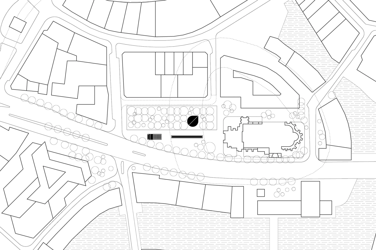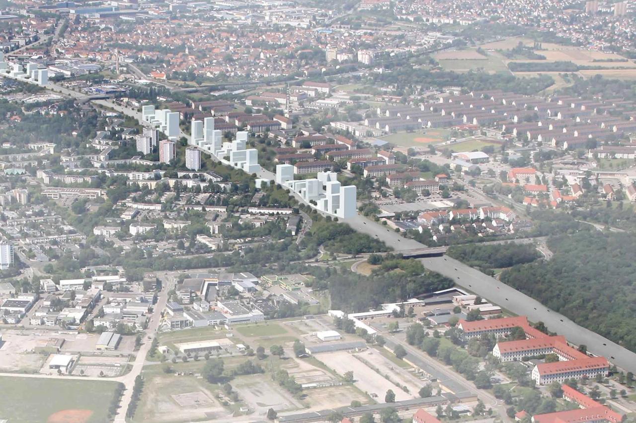 Mannheim is a patchwork city, where areas of very different character and typologies are located next to each other. The problem of the site is the extreme separation by the Autobahn-like street B38, that separates the patches like a ripped cloth. Instead of separating the patches, the street should be a connecting element that stitches the patches together.