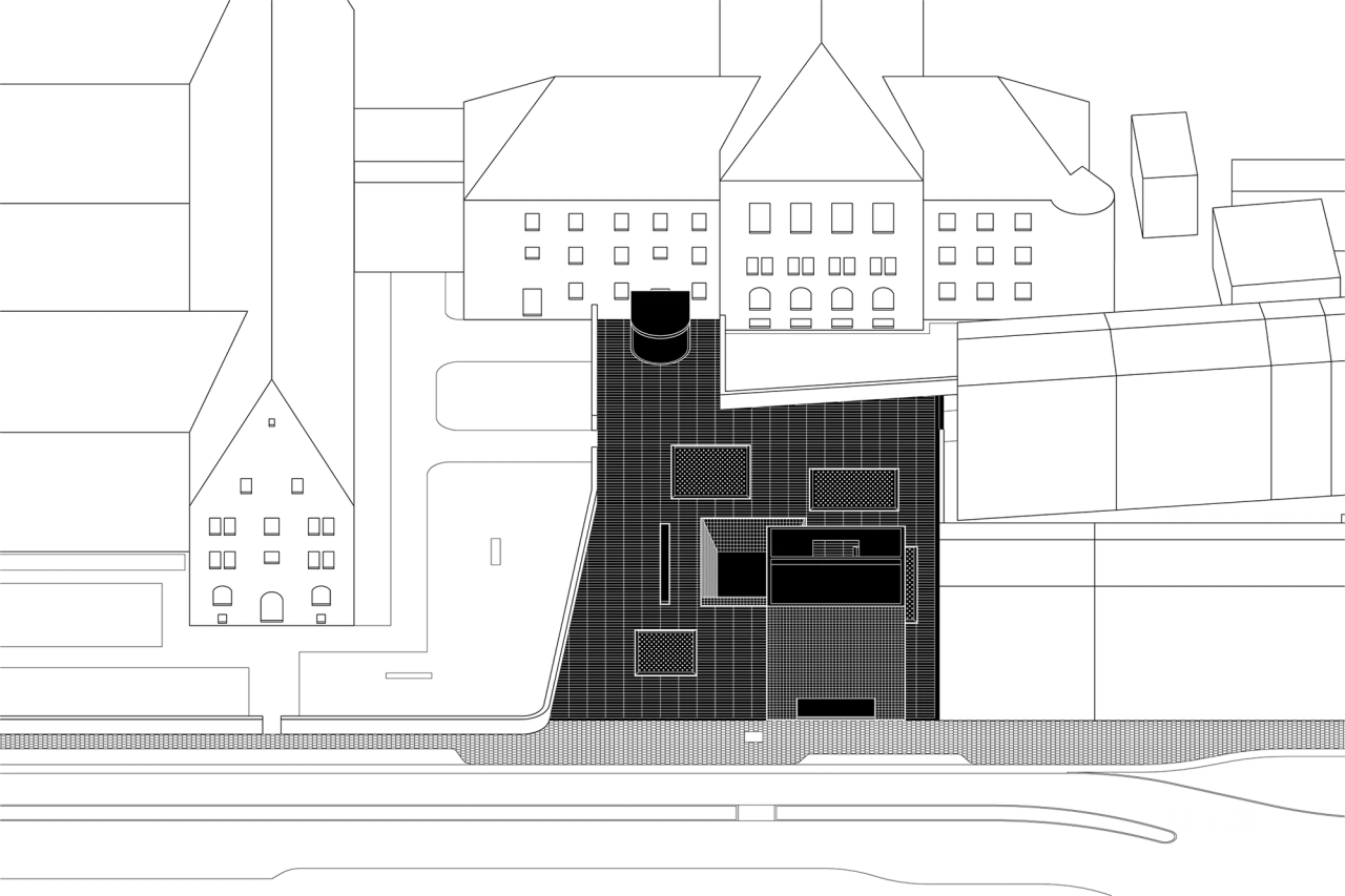The complex consists of several volumes of different sizes that adjust in scale and roof-scape to the surrounding buildings. These volumes are arranged as one building around an open courtyard and combine the functional advantages of a single building with the small-scale structure of rural houses. We intended to give the impression of a cluster of small houses rather than a huge clinic to the children. Moreover the various functions should be distinct from the outside rather than to mingle down in a single volume facilitating orientation to the kids. The new complex embodies a singular building and a small village at the same time, unifying the intimacy of a house with the variety of a village.
