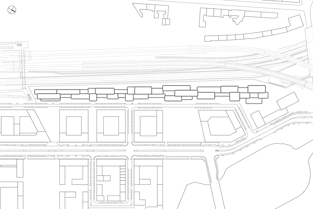 The new building structure of the inverse boulevard is characterized by a permeable layout between north and south and a broad mixture of usage, attracting people from both sides of the boulevard. The location between the two lanes of the street facilitates its crossing.