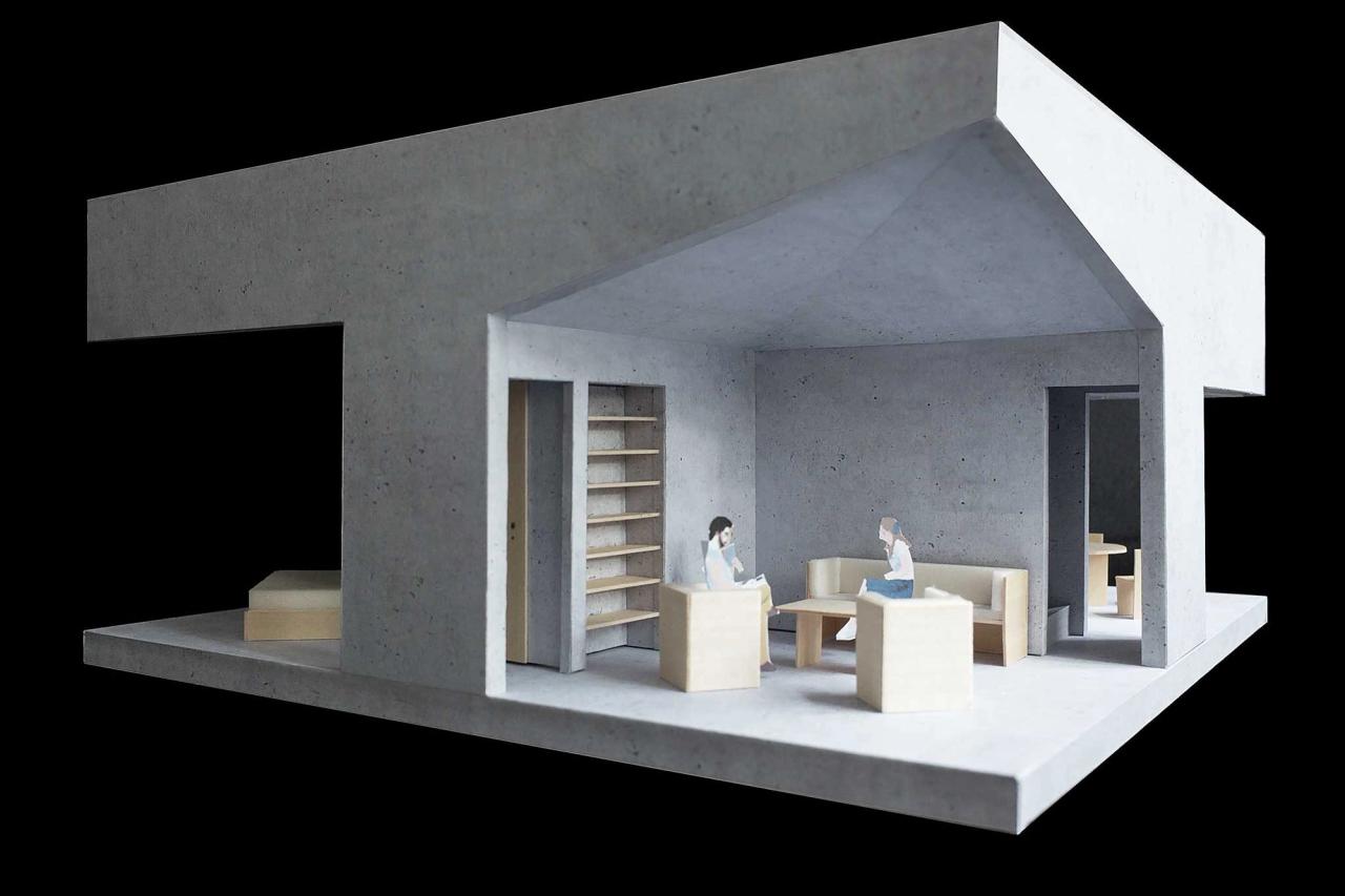 The building nestles at the foot of the old trees, its contour and volume are defined by the open spaces between the trees. The open library is a truly open building. The soil remains visible within the building and the open structure makes it accessible from all sides. However, the low reaching roof provides shelter from the rain and the wind, creating an intimate and protected space.